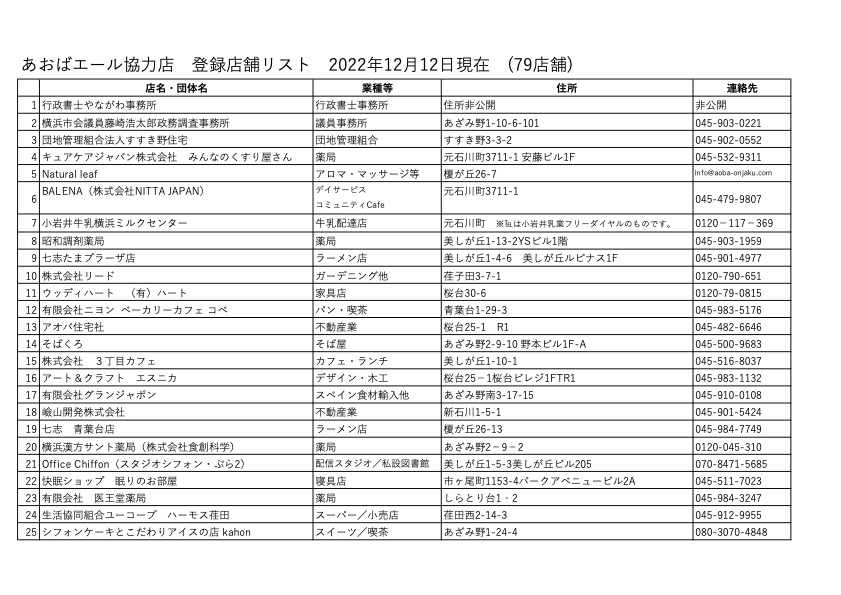 (1)あおばエール協力店:現在の登録状況について