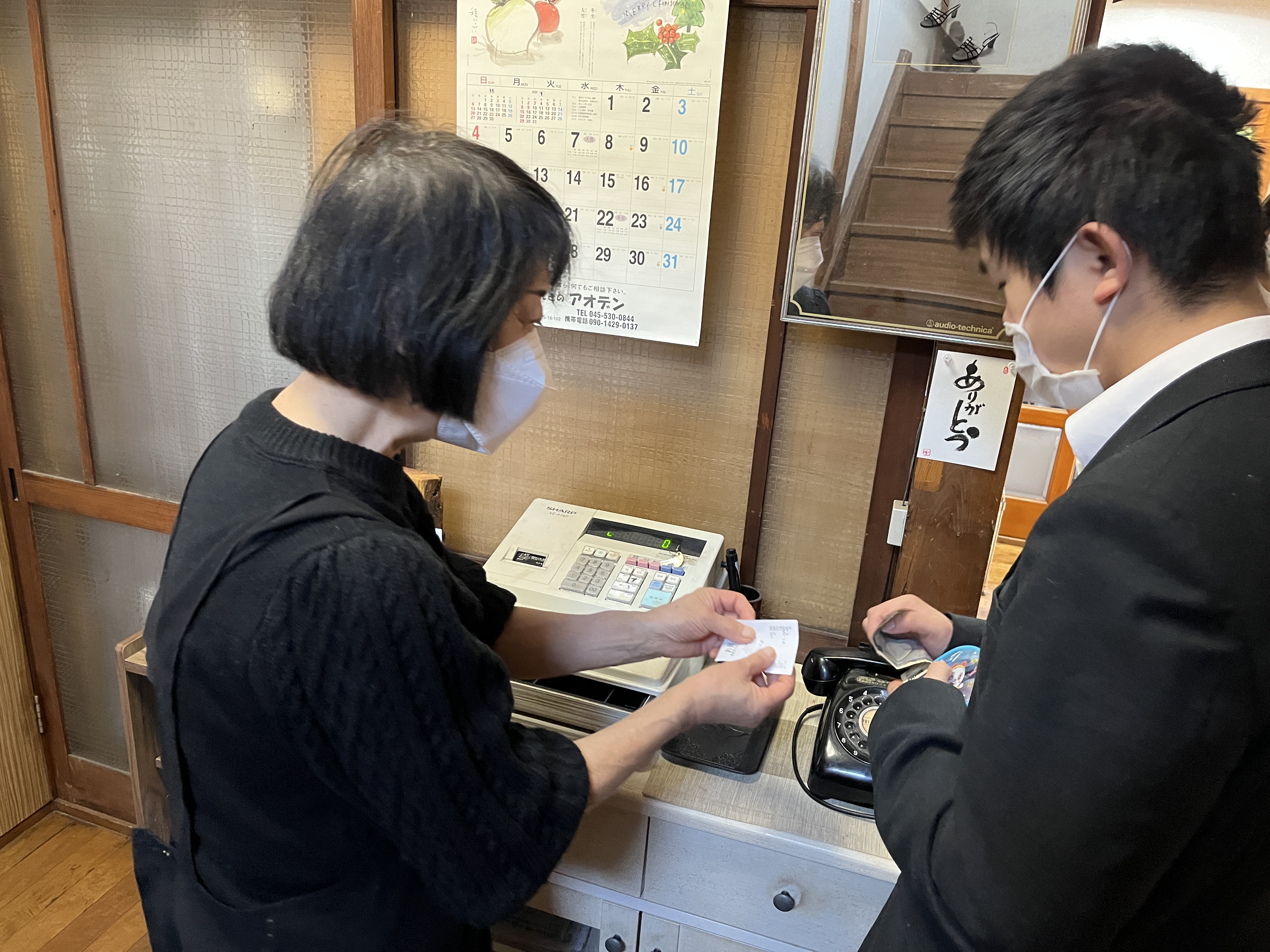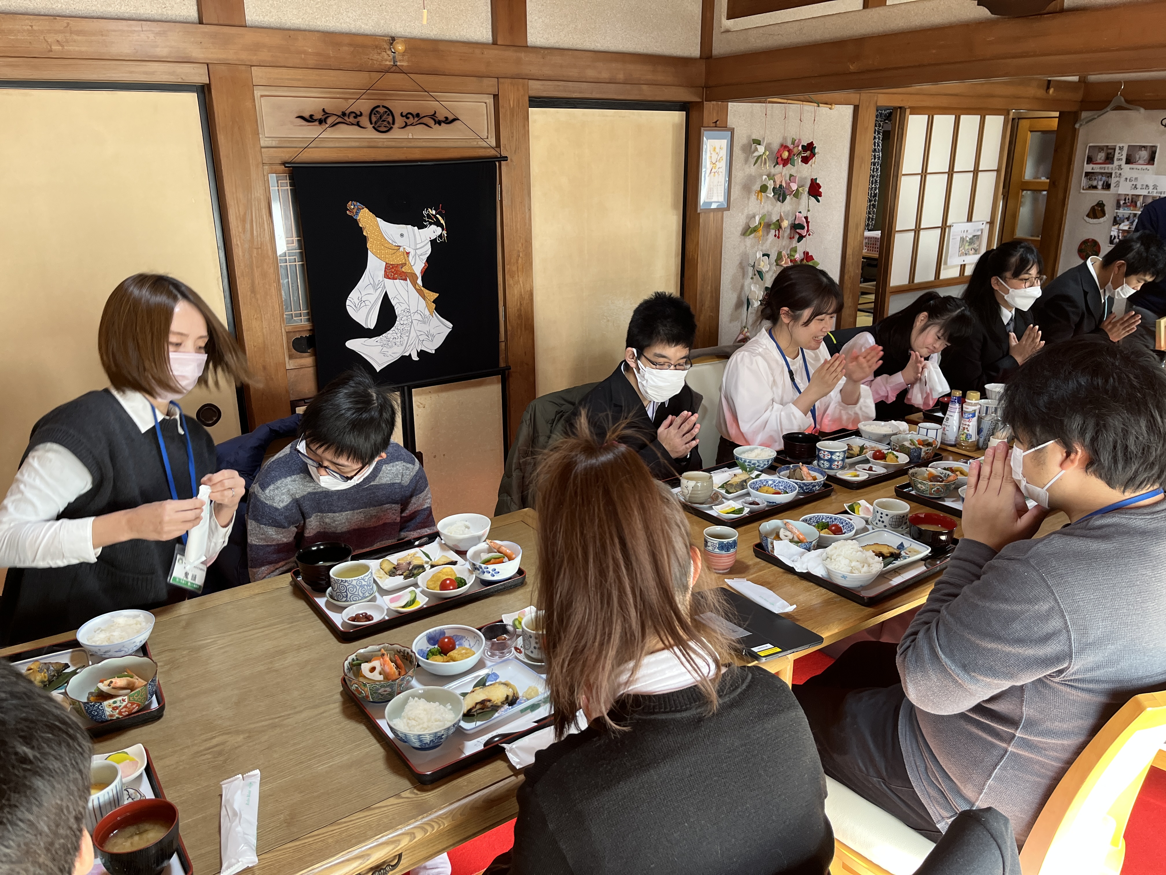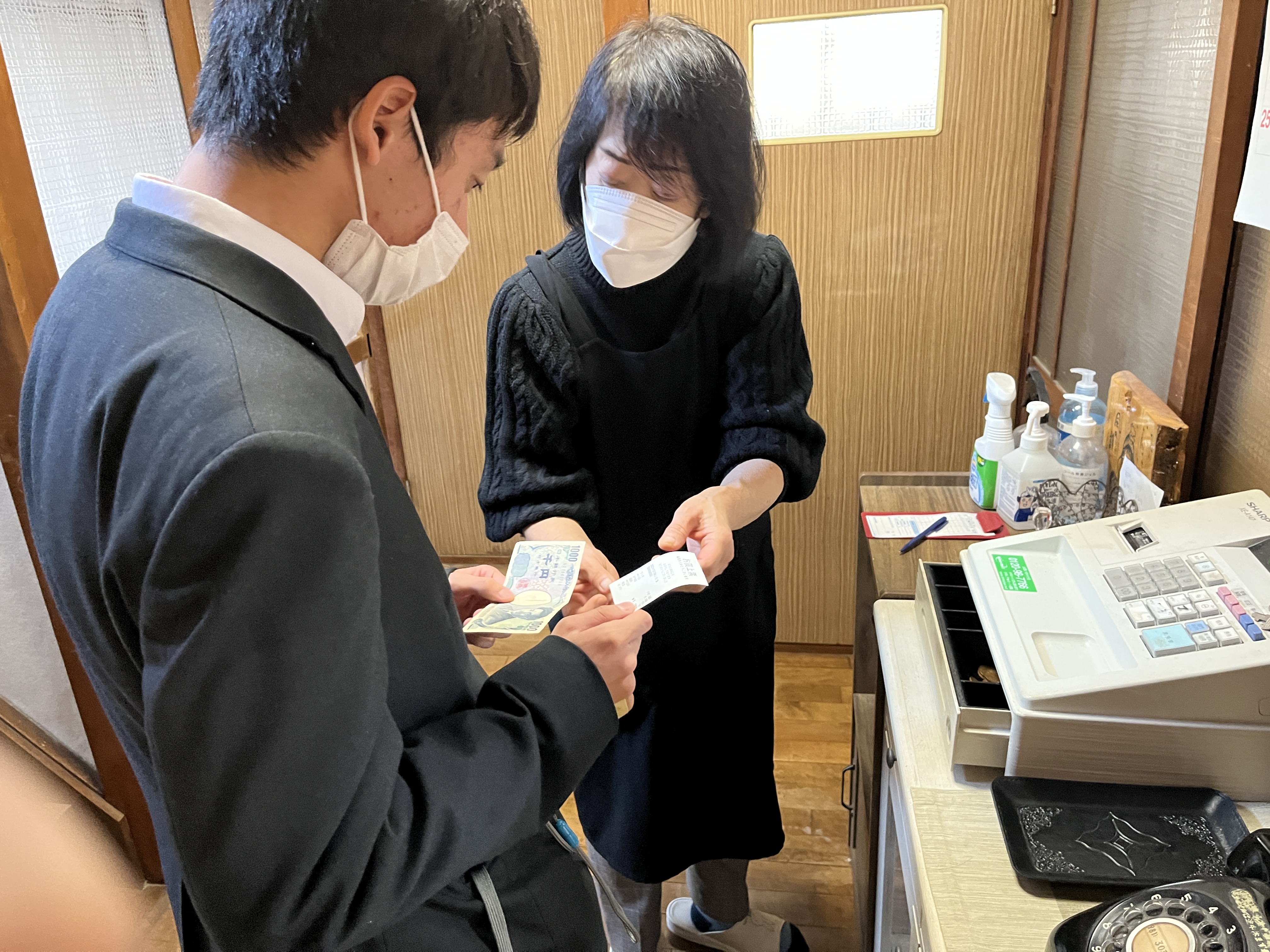 「お食事処おぎ」でのランチの様子。一人一人支払いを行いました。