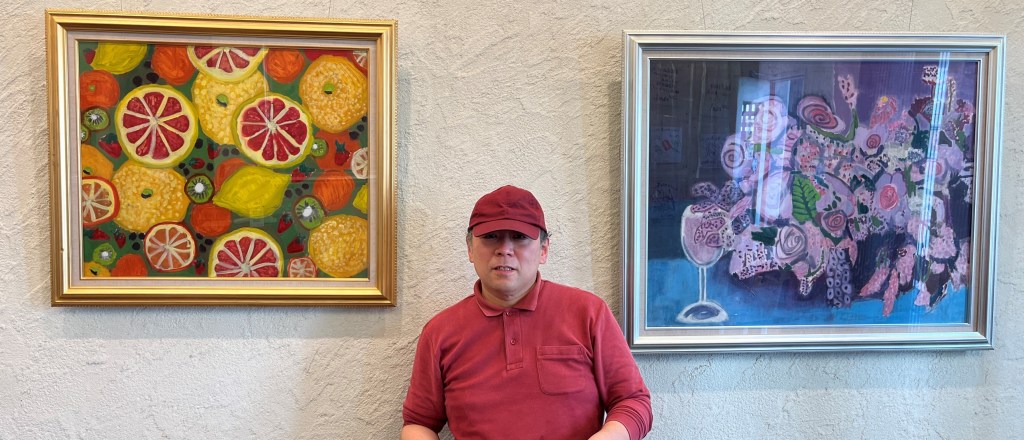 ジョルニカフェ玄さんにて、障害のある当事者さんの作品展示を行いました。店主の中井さんや、作者の地口さんとご家族、それぞれの地域に対する思いを伺いました。