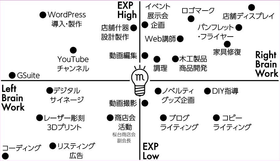パンフレットや名刺、ウェブサイトをはじめとしたデザイン業務に加え、木工(家具の修理やカスタム)、動画制作、補助金を活用した様々な事業を行っています。地域や障害のある方のご用命も対応します。一部、プロボノとしての活動も行います。